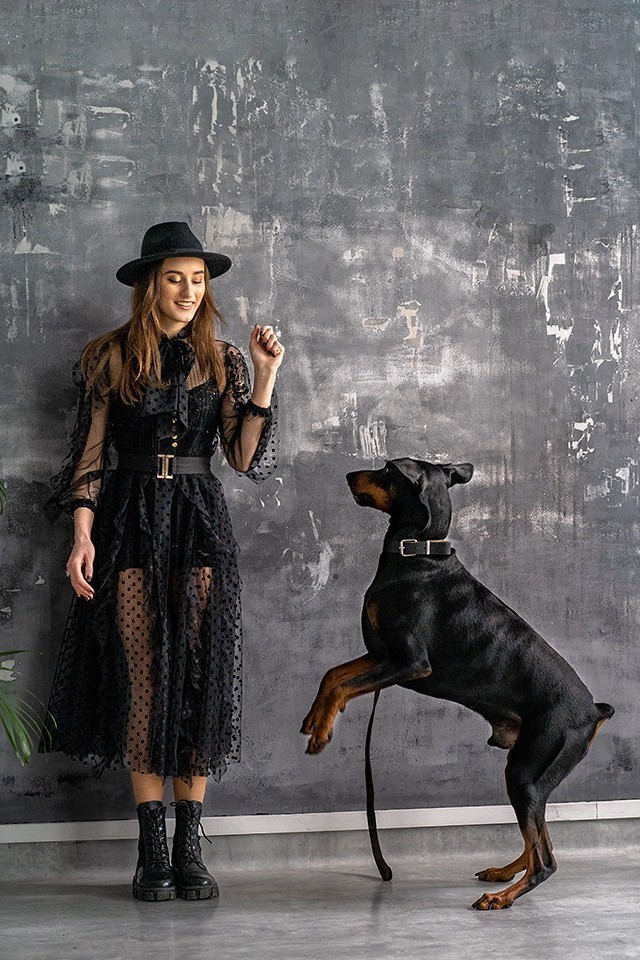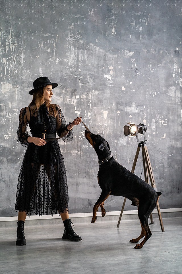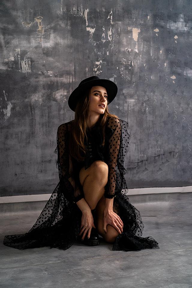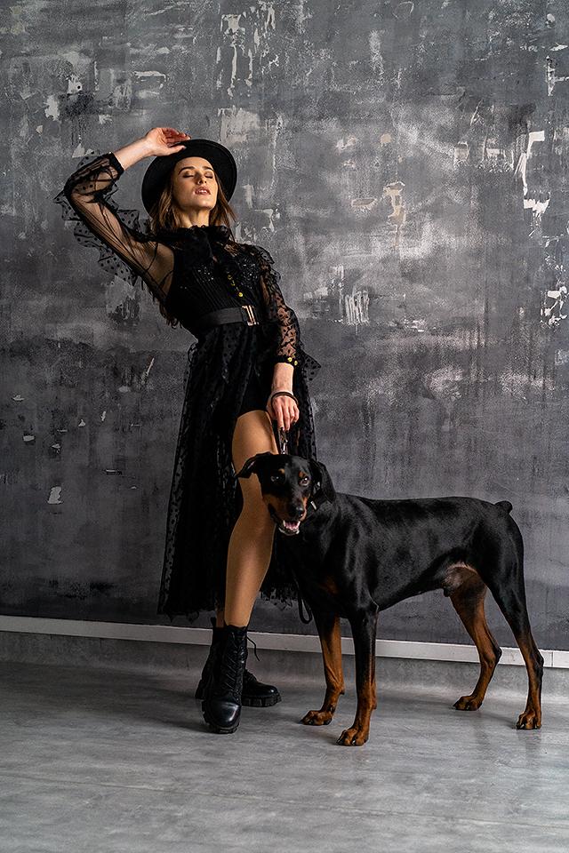 A ruha alatt egy pántos „kis fekete” alapdarab található, amely külön is viselhető. A kényelem érdekében a két rész egymástól elválasztva lett megtervezve, mégis egy egységes kreációt alkotnak. A 7/8 hosszúságú fekete szoknya minden alkalomra tökéletes választás – időtálló, elegáns, ugyanakkor nőies és csábító.