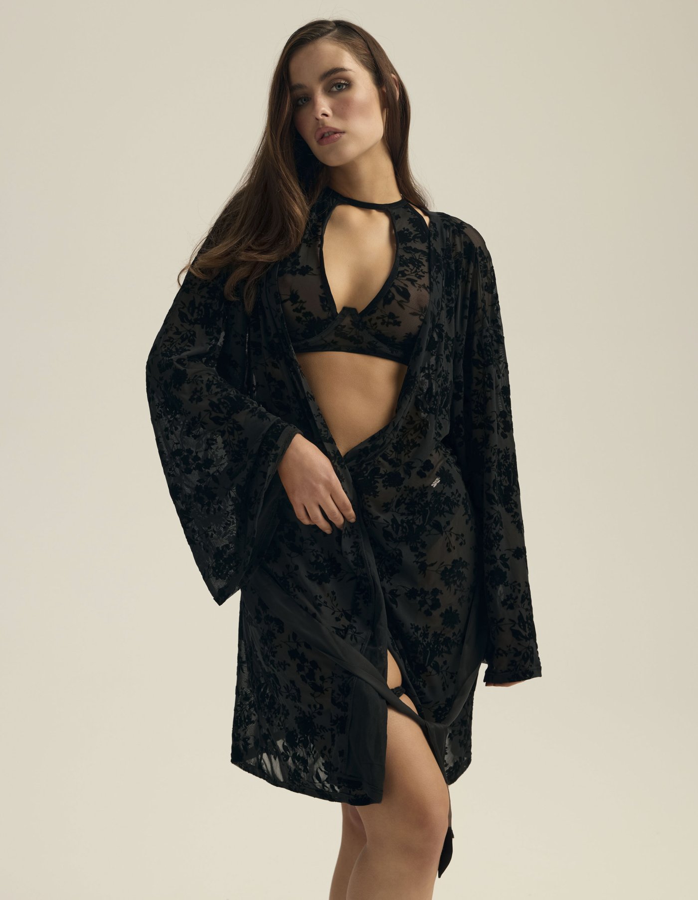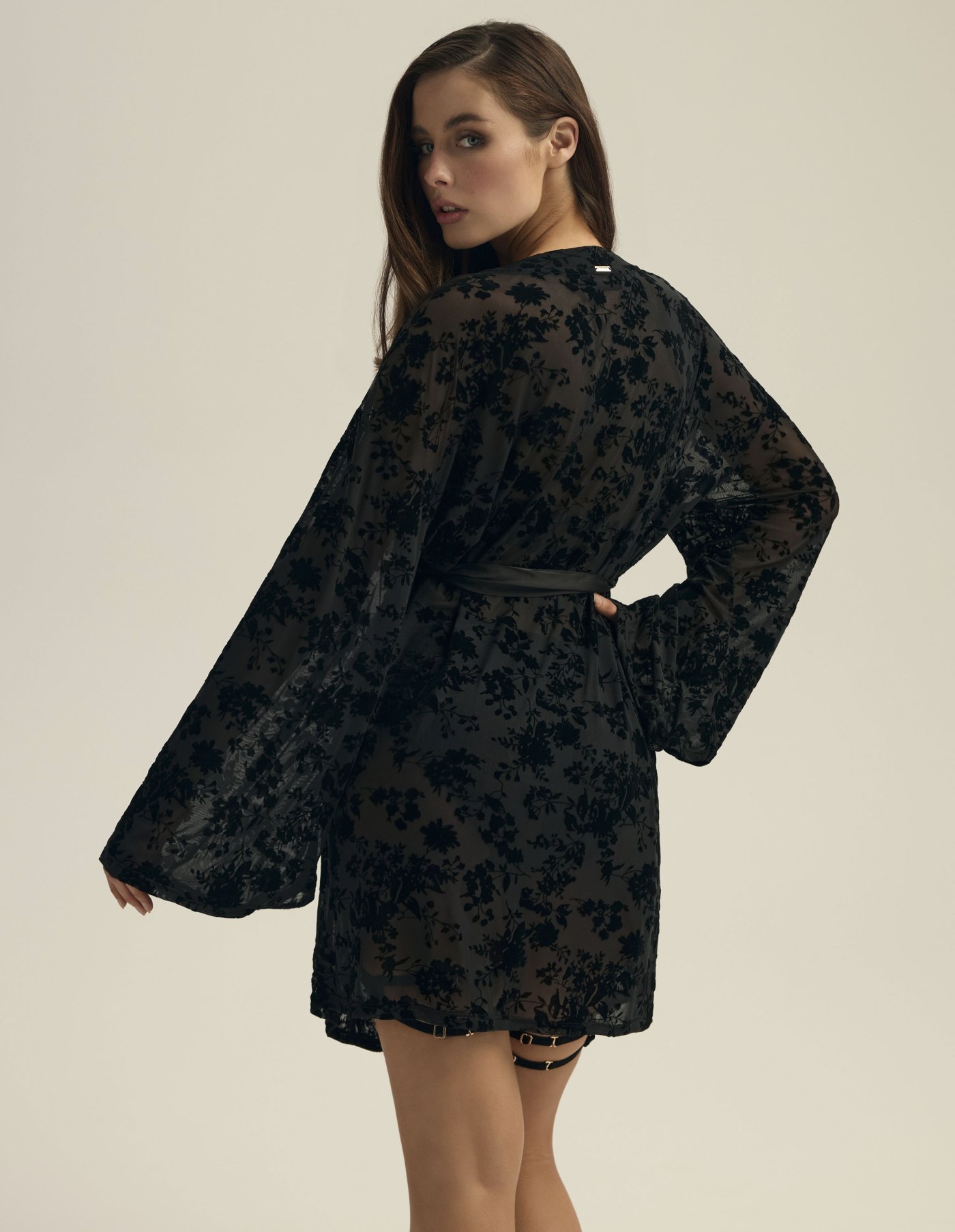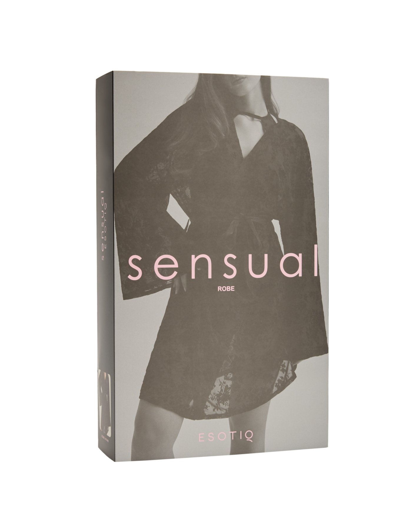 Erotikus FehérneműRobe Zequine fekete színű csipkés köntös S/M