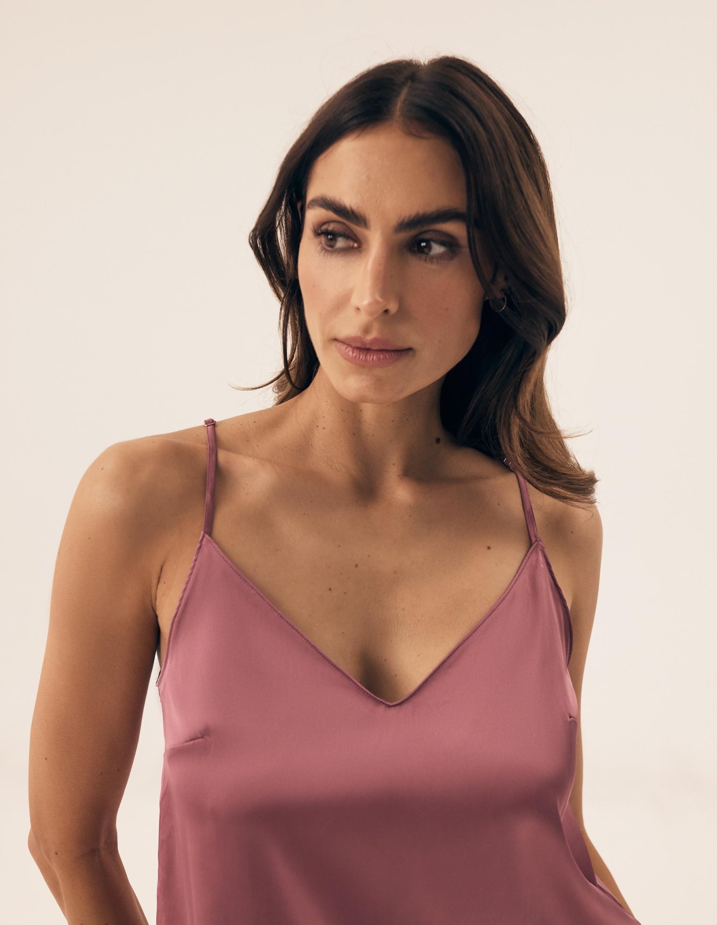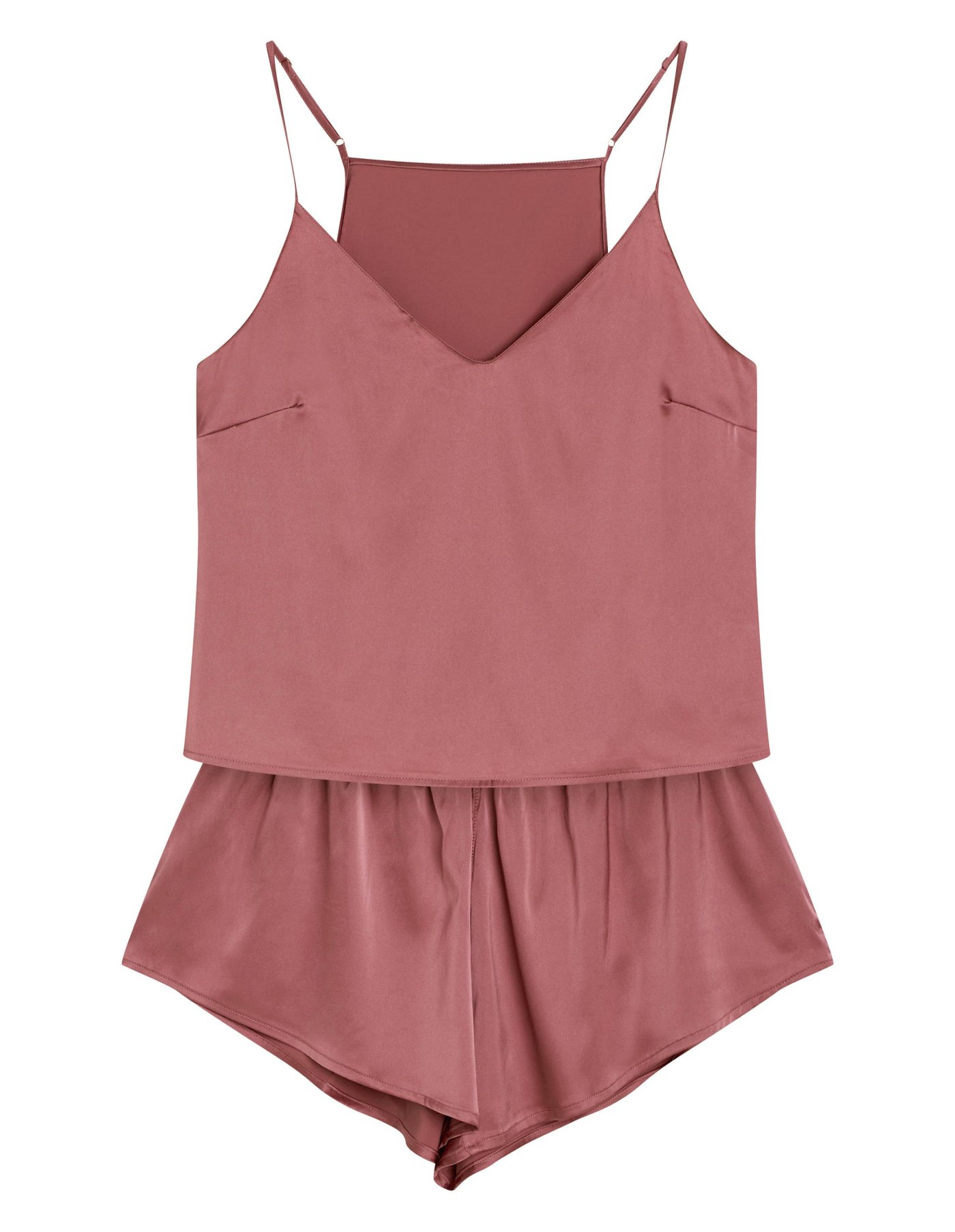 A Jelly selyem női szett egy finom pizsama, amely a jól öltözködő nők számára készült éjszakai viselethez. A szett egy topból és rövidnadrágból áll. Az oldalsó varrásoknak köszönhetően a blúz jobban illeszkedik a testhez. A vékony, állítható pántokkal ellátott blúz és a légies rövidnadrág gumis derékkal rendelkezik, ami kényelmes viseletet biztosít.