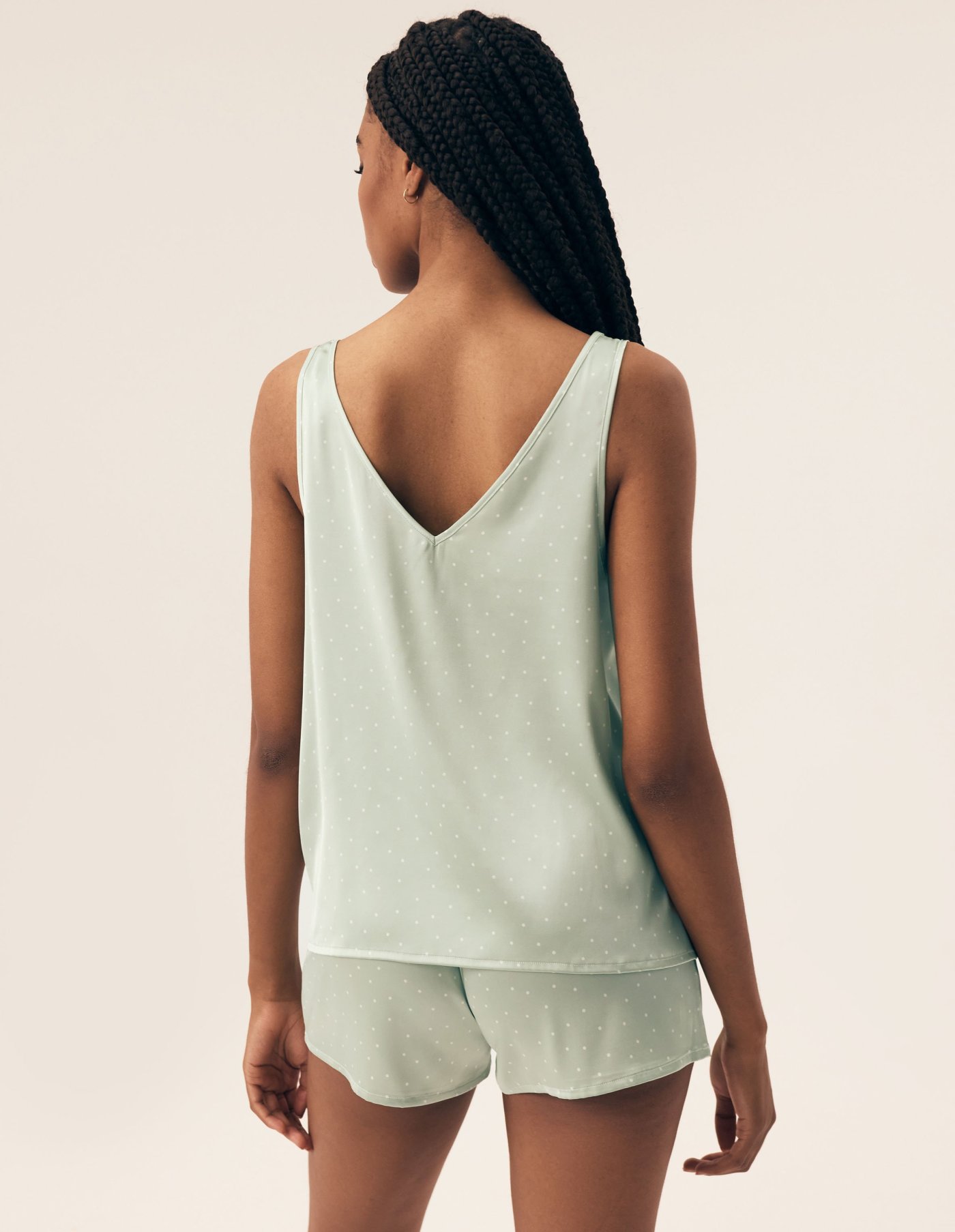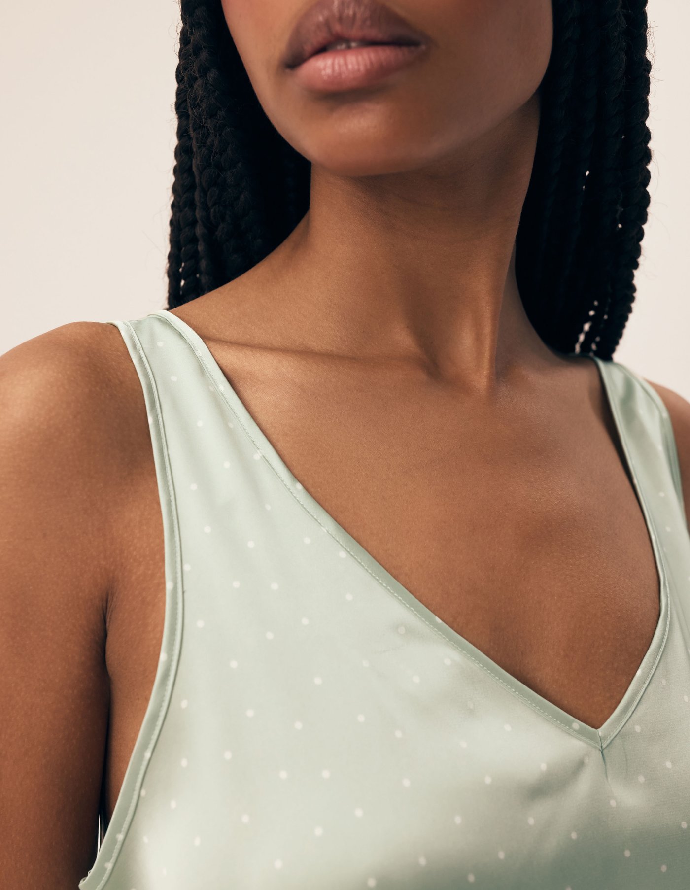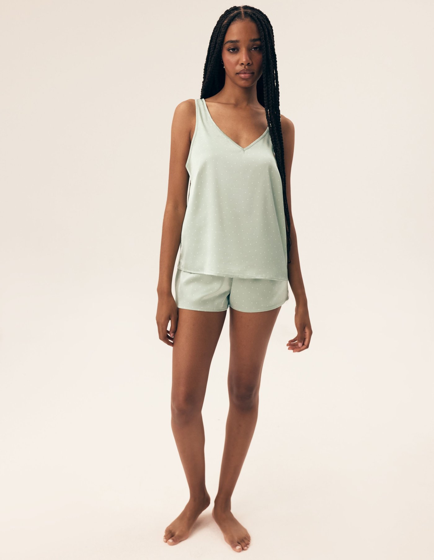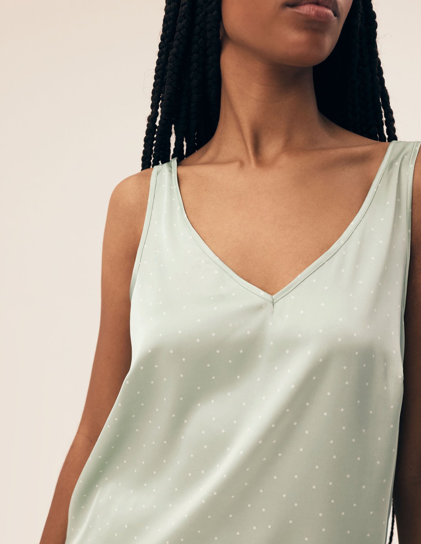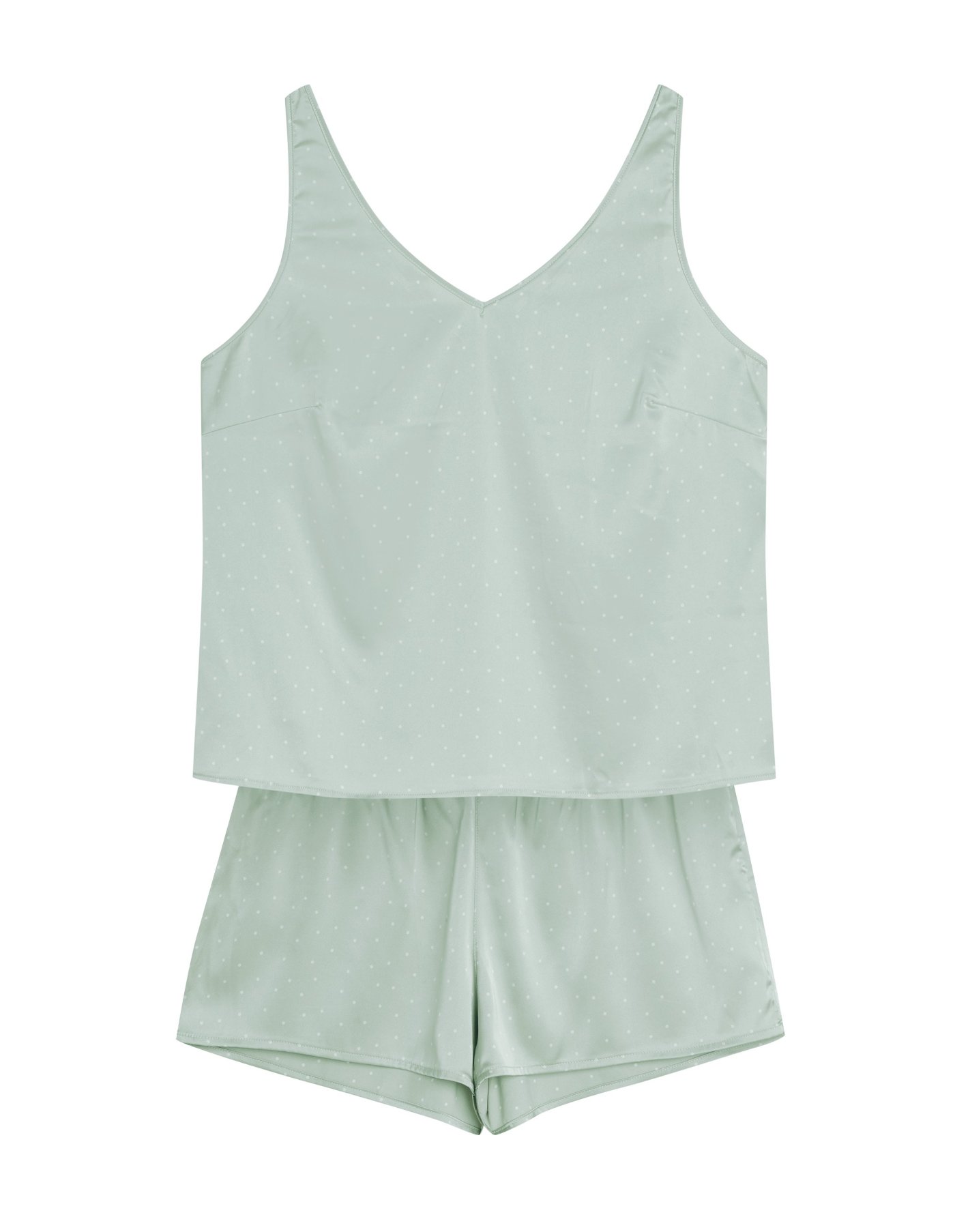 A zöld Renne Pizsama megtalálja helyét azoknak a nőknek a szekrényében, akik értékelik a könnyű anyagokat és az elegáns szabásokat. Derékban gumis nadrág hossza a térd fölé ér.