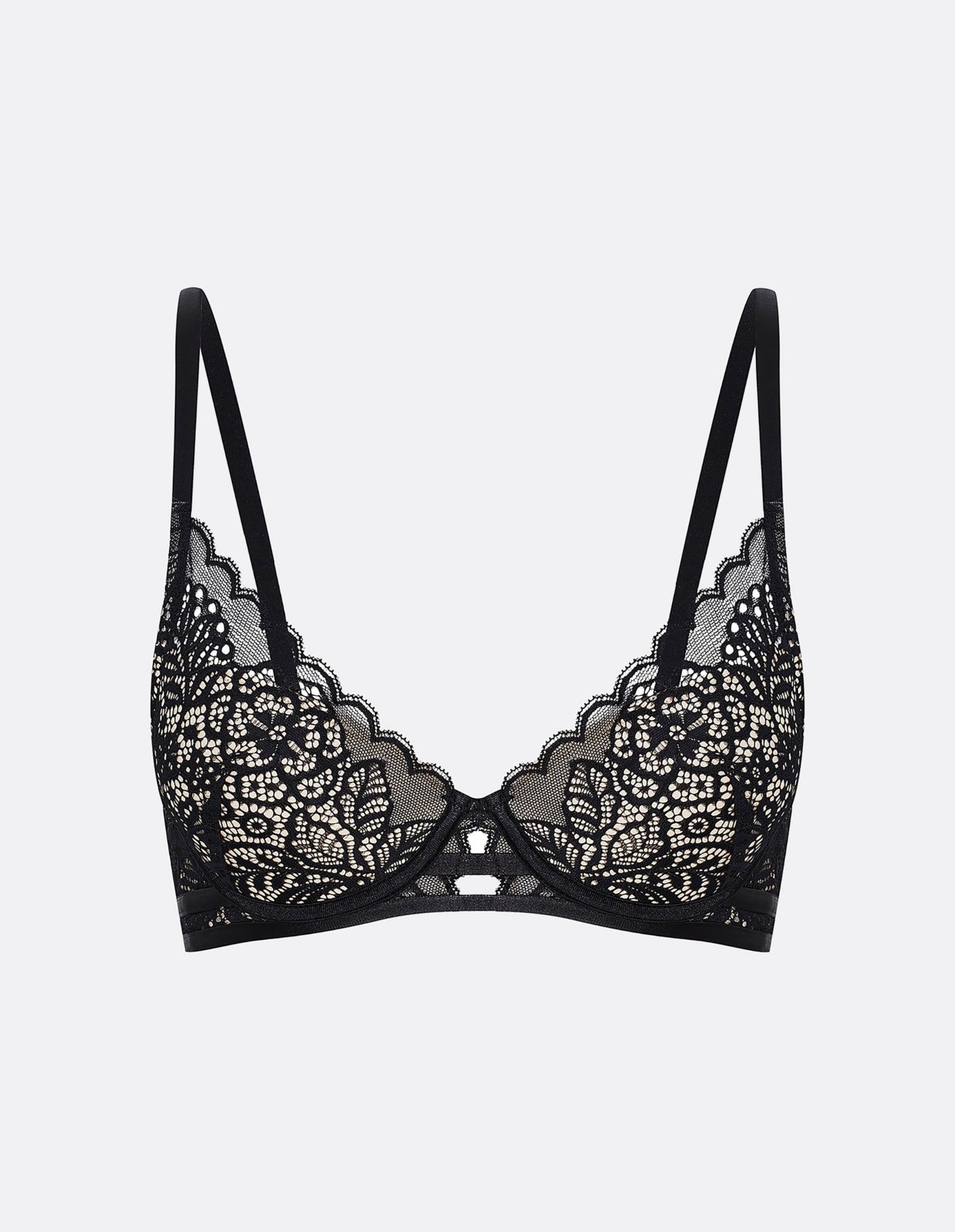 A csipkés push-up melltartó gyönyörű, kiemelt és telt dekoltázst biztosít. A HINT melltartó V-alakú dekoltot formál, míg a merevített kosarak és a merevítők stabil támaszt nyújtanak a melleknek. Az alján található két szalag romantikus jelleget kölcsönöz a melltartónak. Ez a modell tökéletes választás mély dekoltázsú ruhákhoz. Az elegáns, puha és légáteresztő csipke hullámos csipkével van díszítve, és a push-up melltartó négy különböző színváltozatban elérhető.