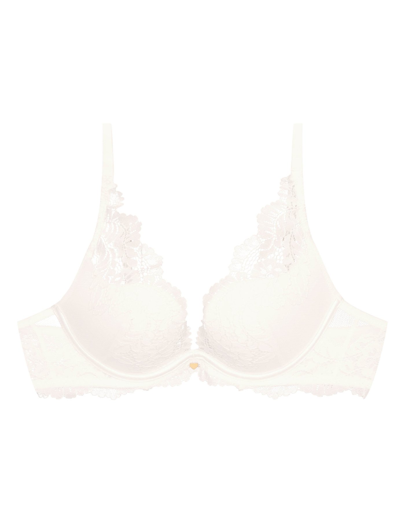 A push-up melltartó kiemeli a nőiességet a finom díszítésekkel és a tökéletes szabással. A szubtilis dizájn miatt ideálisan illik mindennapi viselethez, mind pedig különleges alkalmakra. Levehető pántok, kivehető betétek, amelyek dúsabb dekoltázst biztosítanak, valamint finom csipke.