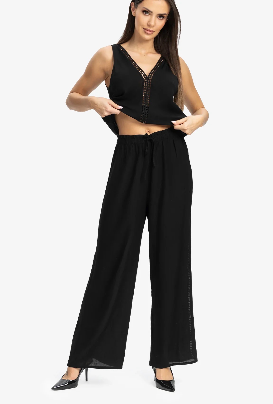 Hosszú NadrágMonaco széles szárú nyári nadrág - Fekete